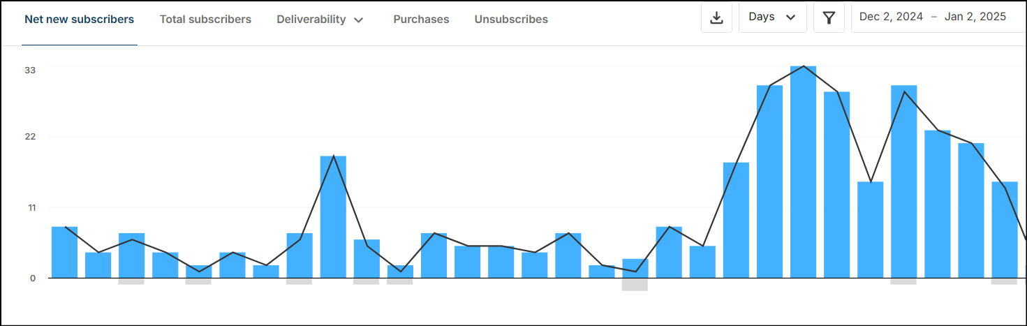 Solution: I’ll continue my coaching business for the year, but will need to keep a strict cap of 7 new coaching clients per quarter. This will continue to keep me spiritually & financially fulfilled, while the community revenue funds the growth of the newsletter. Working directly with clients who come from the newsletter, also gives me new content ideas.